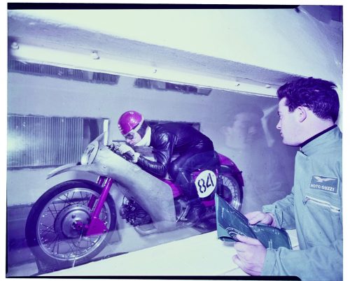 Τη δεκαετία του 1950 έκανε το ντεμπούτο της η σήραγγα αεροδυναμικών δοκιμών, η οποία ήταν η πρώτη στον κόσμο της μοτοσυκλέτας και είναι ακόμη επισκέψιμη στο εργοστάσιο του Mandello. Ήταν το δημιούργημα μιας ομάδας εκπληκτικών μηχανικών, στους οποίους περιλαμβάνονται οι Umberto Todero, Enrico Cantoni και ένας σχεδιαστής που πολύ γρήγορα εξελίχθηκε σε θρύλο: ο Μιλανέζος Giulio Cesare Carcano, ο πατέρας της απίστευτης Otto Cilindri ή V8, με τελική ταχύτητα 285 χλμ./ώρα (1955) και των πρωτότυπων μοτοσυκλετών που κέρδισαν 15 παγκόσμιους τίτλους ταχύτητας και 11 τίτλους Tourist Trophy, μεταξύ 1935 και 1957.