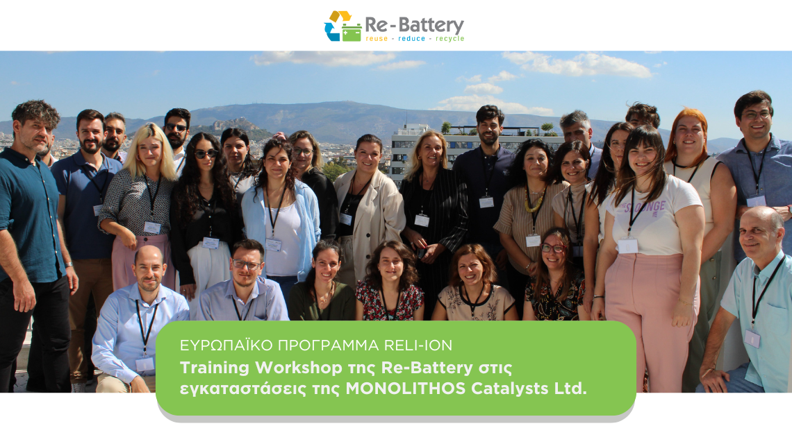 Στα πλαίσια του Ευρωπαϊκού προγράμματος ReLi-ion, η Re-Battery σε συνεργασία με την MONOLITHOS Catalysts Ltd πραγματοποίησε την Τρίτη 01/10/2024 ένα Training Workshop, στις εγκαταστάσεις της MONOLITHOS Catalysts Ltd. H Re-Battery είχε την ευκαιρία να παρουσιάσει στους partners ενός προγράμματος που ερευνά την βελτιστοποίηση της διαδικασίας ανακύκλωσης υλικών για τις μπαταρίες λιθίου στο τέλος του