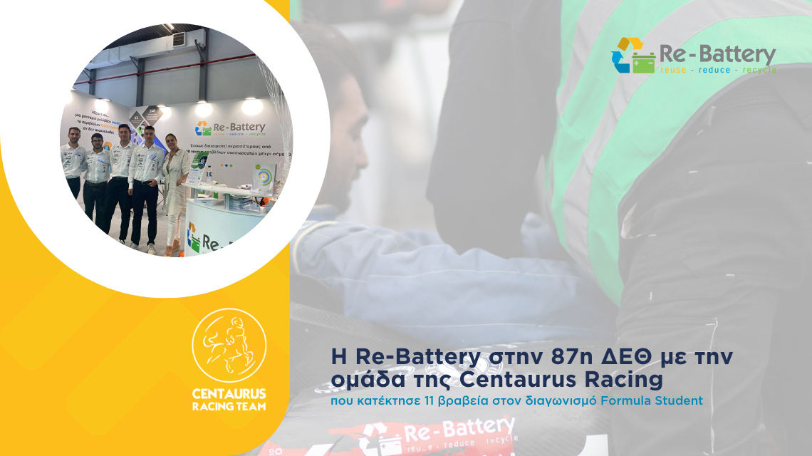 Η Re-Battery δικαιώθηκε που επέλεξε να στηρίξει, ως χορηγός την προσπάθεια των παιδιών της  Centaurus Racing. Οι διαγωνισμοί Formula Student έφτασαν στο τέλος η Centaurus Racing ανέβηκε συνολικά 11 φορές στο βάθρο. Στην Αυστρία στο Redbull Ring  διαγωνίστηκε με 21 μονοθέσια και έλαβε την: 3η θέση στο στατικό αγώνισμα του μηχανολογικού σχεδιασμού, 2η θέση στην