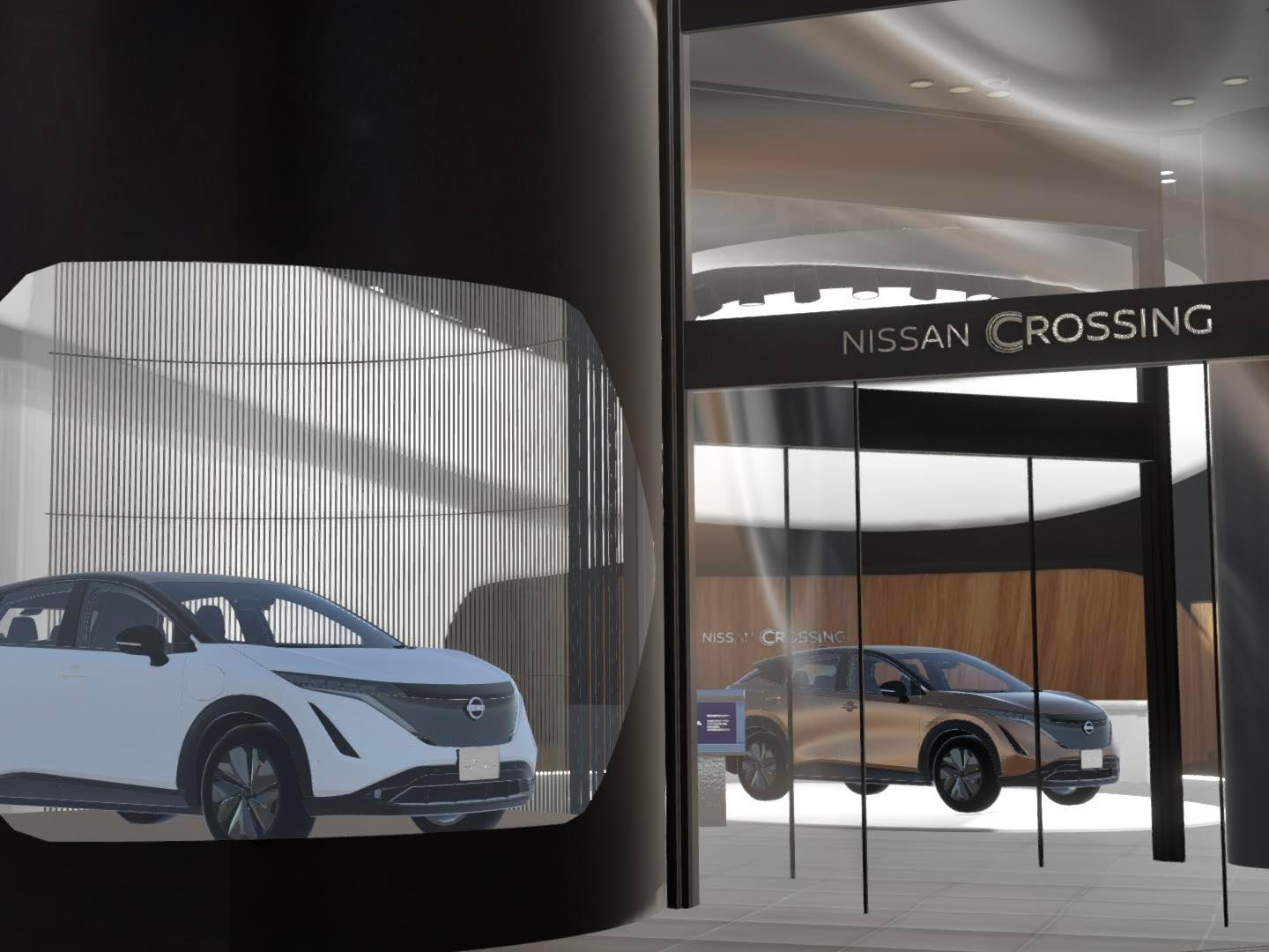 Τώρα το Nissan Crossing έχει αναδημιουργηθεί σε μια εκδοχή εκπληκτικής εικονικής πραγματικότητας, παρουσιάζοντας το ολοκαίνουργιο ηλεκτρικό crossover Ariya. Μπορείτε να βρείτε την εικονική συλλογή με το όνομα "NISSAN CROSSING"* στην VR πλατφόρμα κοινωνικής δικτύωσης VRChat, στην κατηγορία "Worlds".