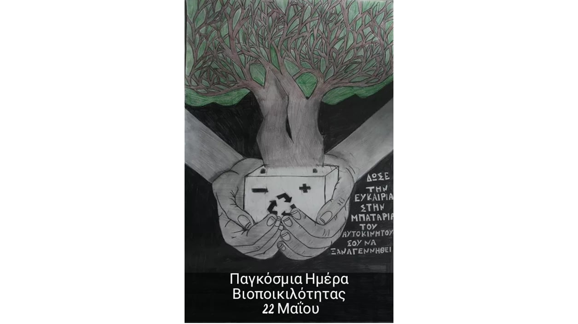 Στην αφίσα εικονίζονται δυο ανθρώπινα χέρια τα οποία κρατούν ένα συσσωρευτή αυτοκινήτου. Μέσα από τον συσσωρευτή «γεννιέται» ένα δένδρο, το οποίο συμβολίζει τη ζωή αλλά και την προστασία του περιβάλλοντος, παρακινώντας μας προς την ανακύκλωση.