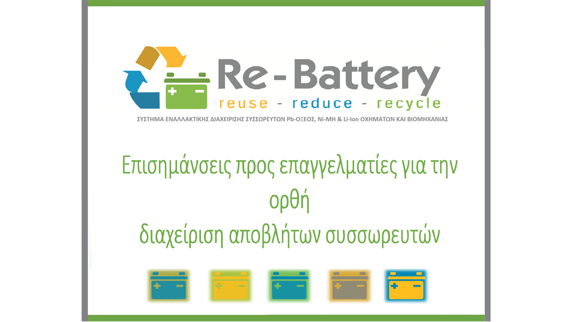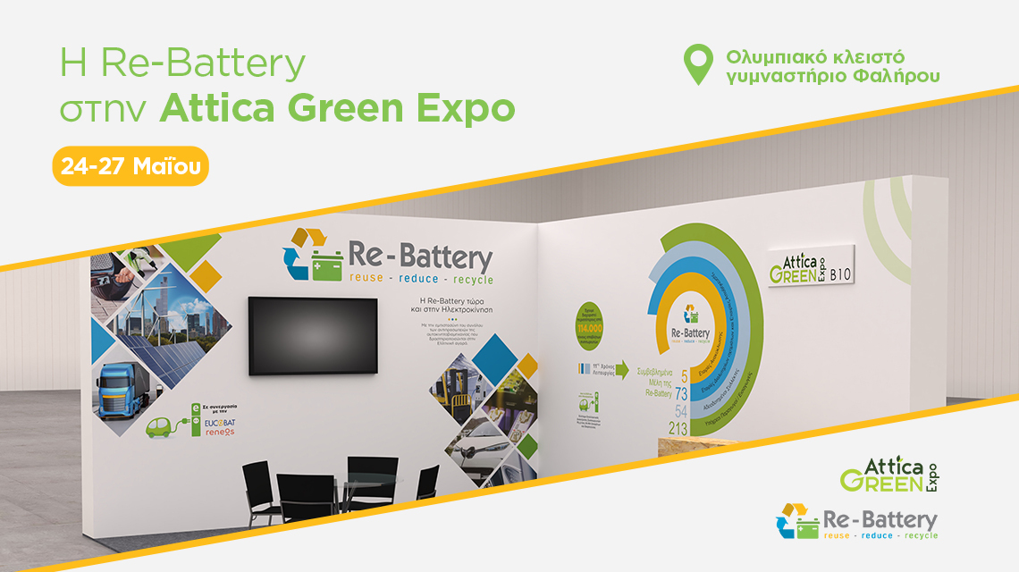 Η Re-Battery συμμετέχει για 3η συνεχή χρονιά στην Attica Green Expo, μια έκθεση με περιβαλλοντικό και κοινωνικό πρόσημο, με μέλημα την ευαισθητοποίηση μικρών και μεγάλων για την αναγκαιότητα της ανακύκλωσης. Ως Σύστημα Εναλλακτικής Διαχείρισης μπαταριών οχημάτων & βιομηχανίας, κύριος στόχος μας είναι να ενημερώσουμε τους επισκέπτες της έκθεσης για την επικινδυνότητα των αποβλήτων μπαταριών